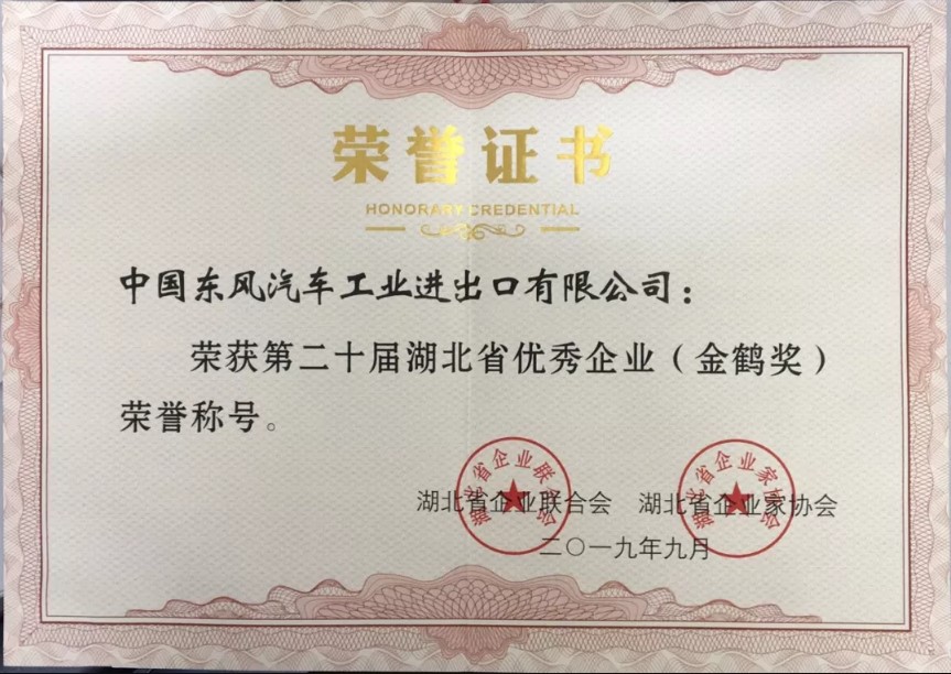 近日,湖北省企業(yè)聯(lián)合會(huì)、湖北省企業(yè)家協(xié)會(huì)發(fā)布了2019年湖北省企業(yè)100強(qiáng)名單。東風(fēng)汽車(chē)集團(tuán)有限公司以6015億元繼續(xù)領(lǐng)跑。會(huì)上同期發(fā)布了2019年湖北省優(yōu)秀企業(yè)(金鶴獎(jiǎng))和2019年湖北省優(yōu)秀企業(yè)家(金牛獎(jiǎng))。中國(guó)東風(fēng)汽車(chē)工業(yè)進(jìn)出口有限公司榮獲“2019年湖北省優(yōu)秀企業(yè)(金鶴獎(jiǎng))”榮譽(yù)稱(chēng)號(hào)