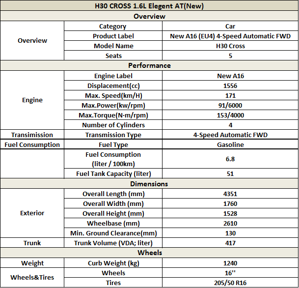 H30 CROSS, With a wheelbase of 2,610mm and a body height of 1,528mm, the H30 CROSS brings you the pleasure of oversize space.